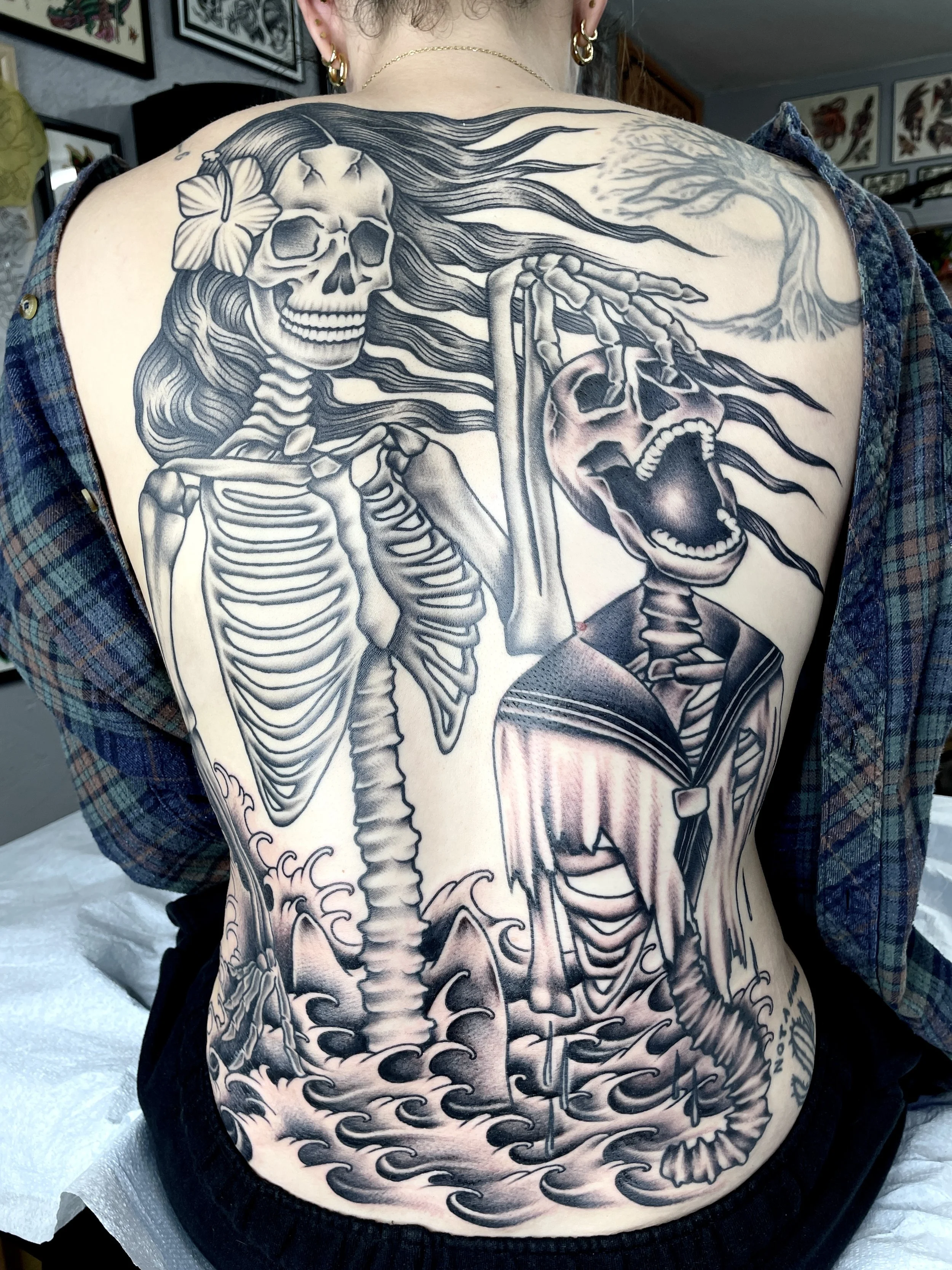 Typically for large scale work, I recommend first booking a consultation where we can meet in person and talk about your ideas. From there, we will collaboratively work to bring your vision to life. I always recommend multiple sittings for larger scale work, and always recommend financial flexibility in case it takes more or less time than expected.